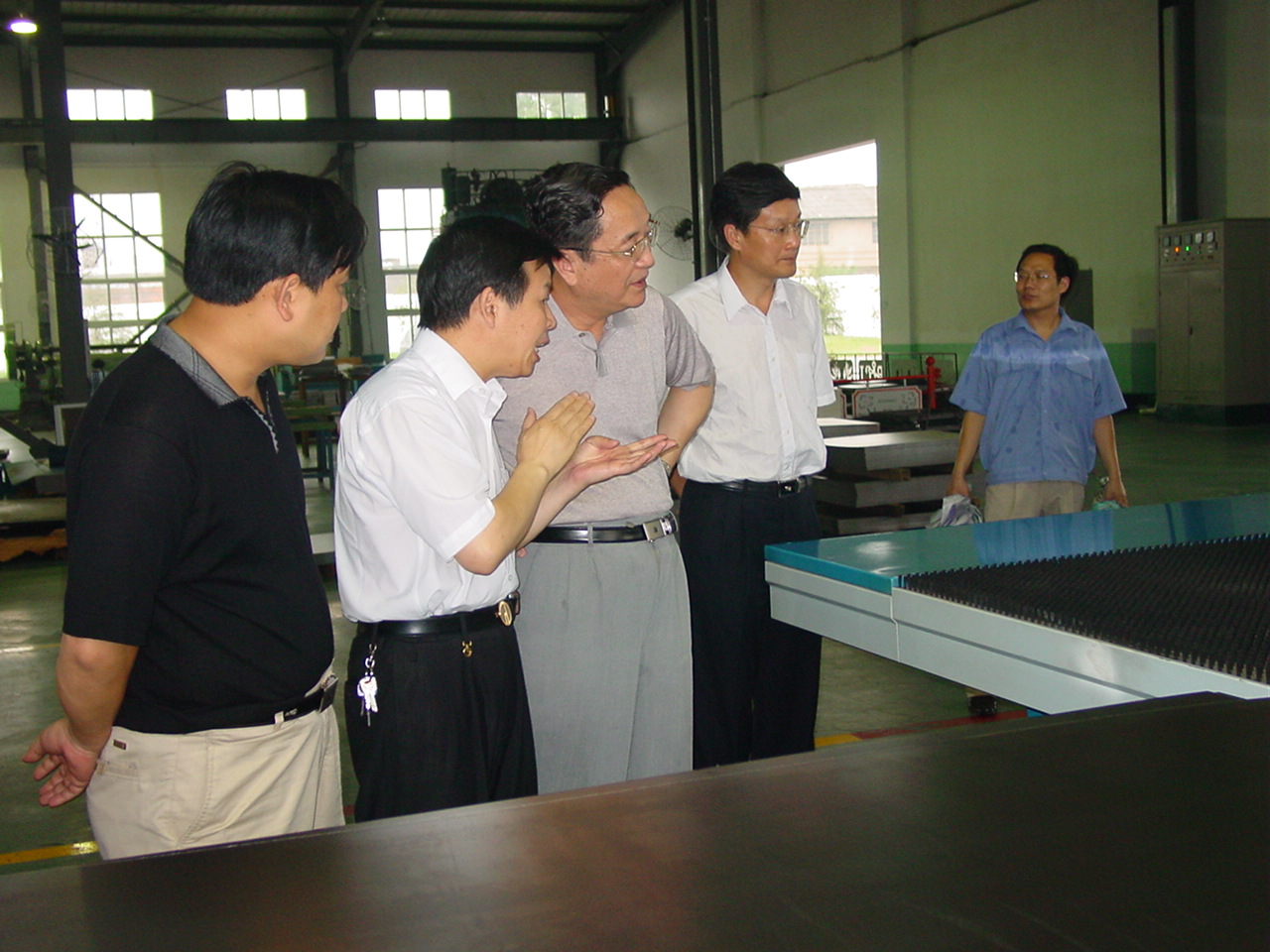 圖為7月9日,中共中央政治局委員、湖北省委書(shū)記俞正聲(左三),在天門(mén)市委書(shū)記王建鳴(左四)、市長(zhǎng)別必雄(左一)和天門(mén)紡機(jī)公司總經(jīng)理沈方勇(左二)的陪同下,考察該公司國(guó)家級(jí)“火炬計(jì)劃”項(xiàng)目的場(chǎng)景。