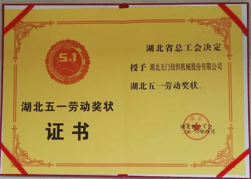 近日,公司傳來(lái)喜訊。4月28日在武漢東湖賓館召開(kāi)的湖北省慶祝五一國(guó)際勞動(dòng)節(jié)暨表彰大會(huì)上,湖北天門(mén)紡織機(jī)械股份有限公司被省工會(huì)授予“五一勞動(dòng)獎(jiǎng)狀”,這是天門(mén)市本年度唯一上榜單位。