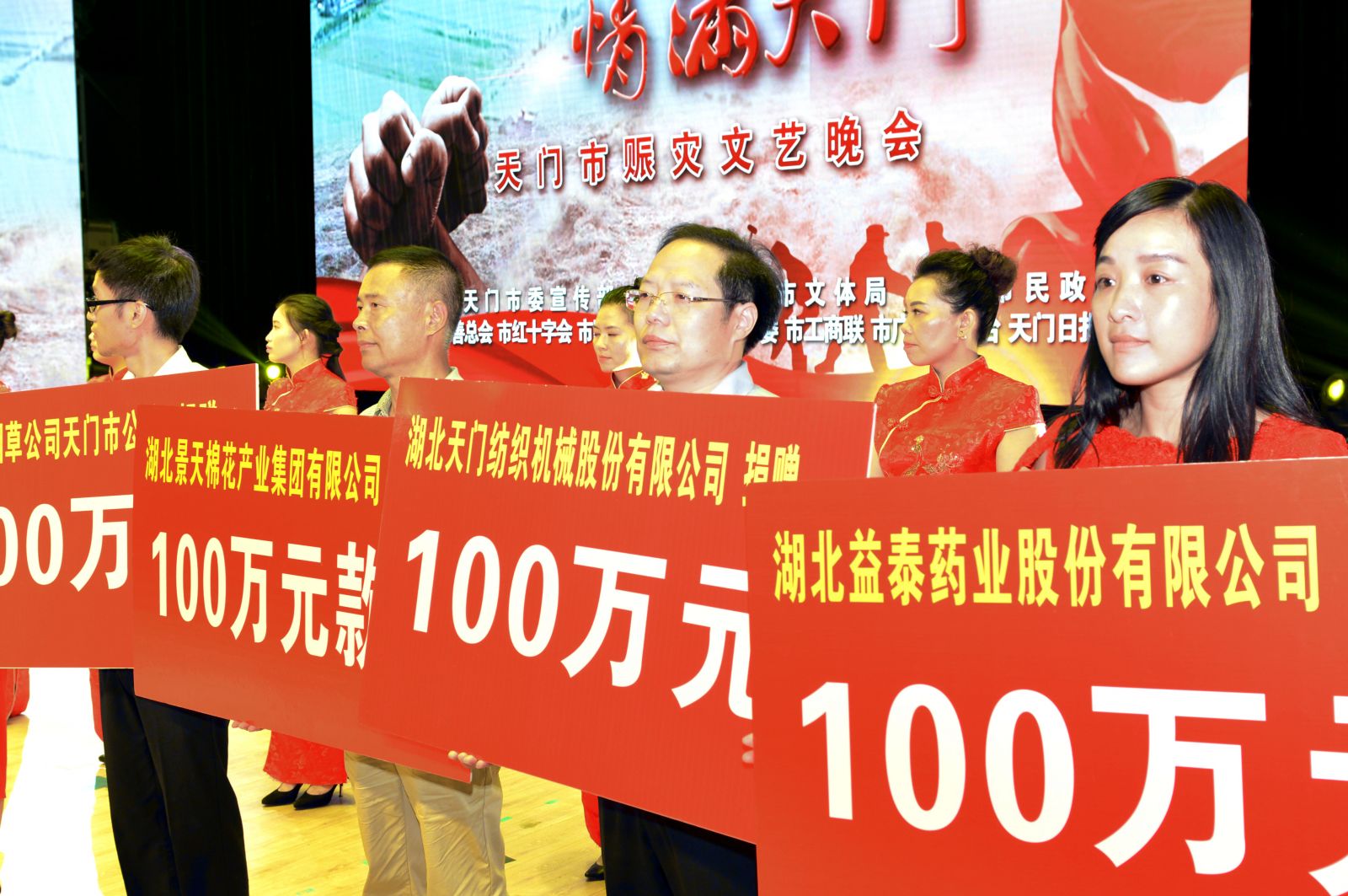 2016年9月2日晚,涼風(fēng)習(xí)習(xí),星光燦爛。由天門市委市政府主辦的主題為"風(fēng)雨共舟,情滿天門"的賑災(zāi)義演晚會(huì)拉開(kāi)序幕。湖北天門紡織機(jī)械股份有限公司心系今夏受百年洪澇災(zāi)害的天門袍澤,慷慨伸出援助之手,繼前三次捐款捐物后,在義演會(huì)上再次捐贈(zèng)100萬(wàn)元人民幣。