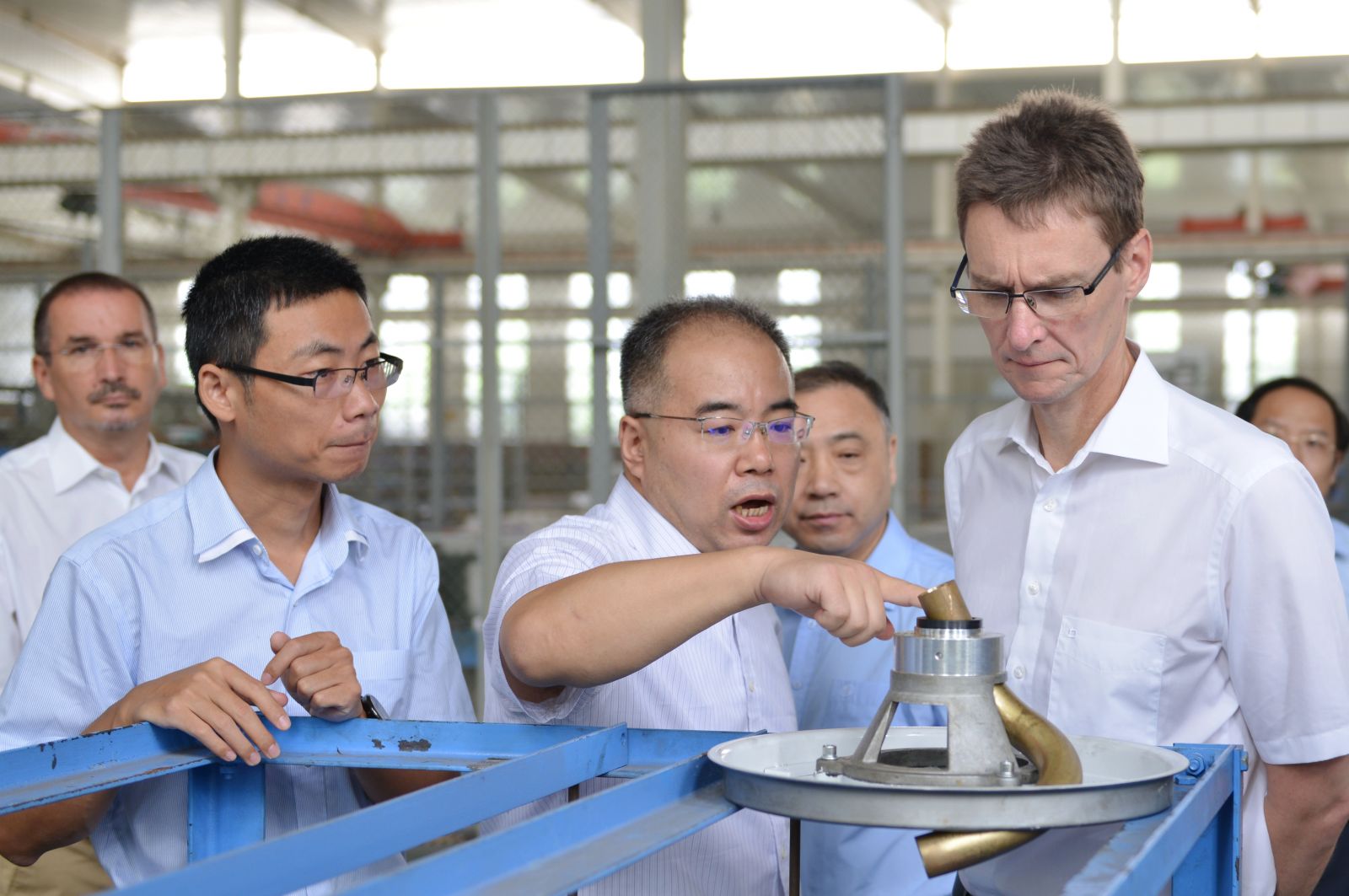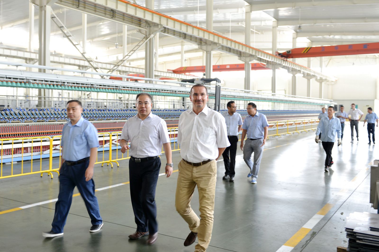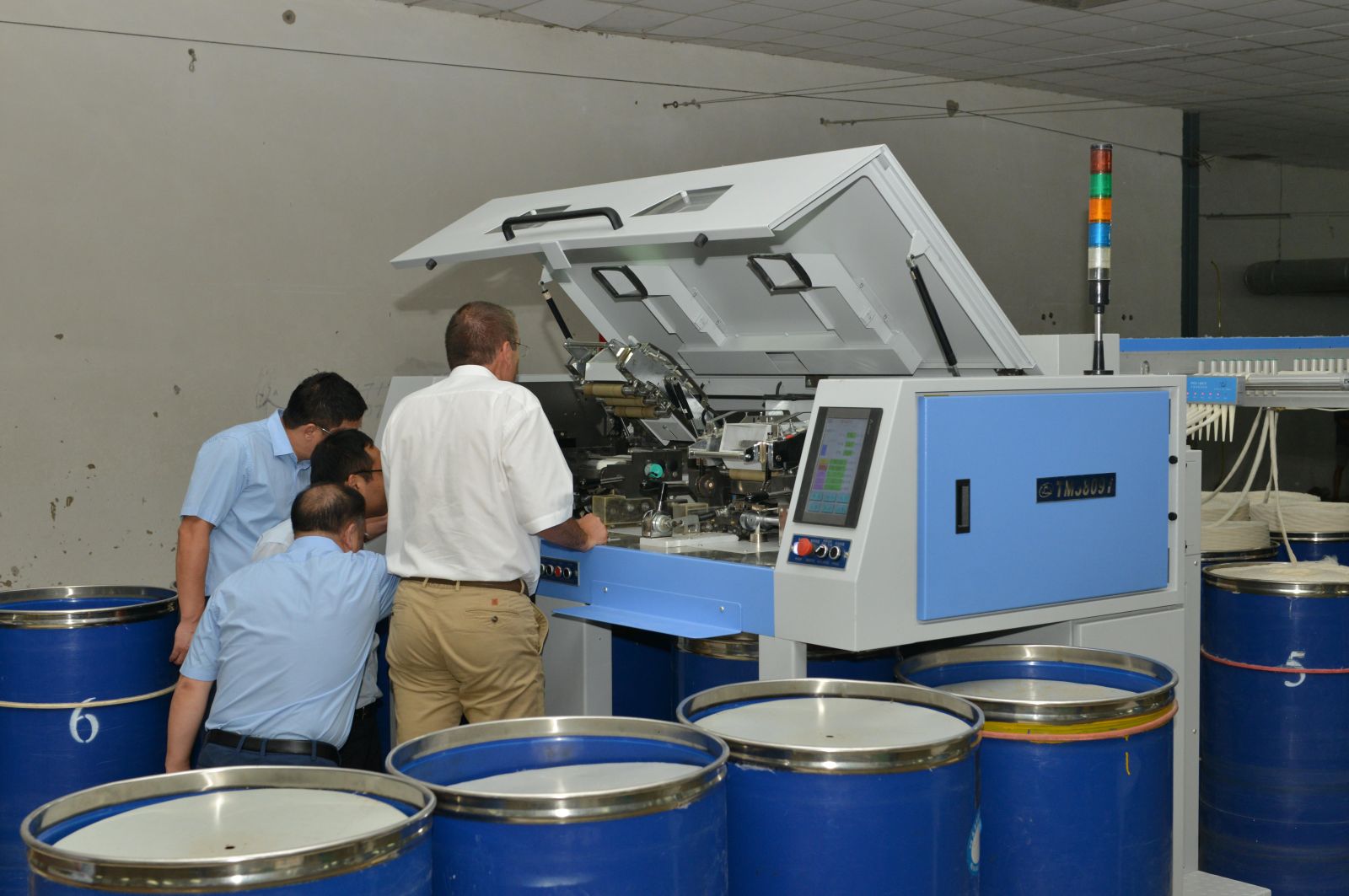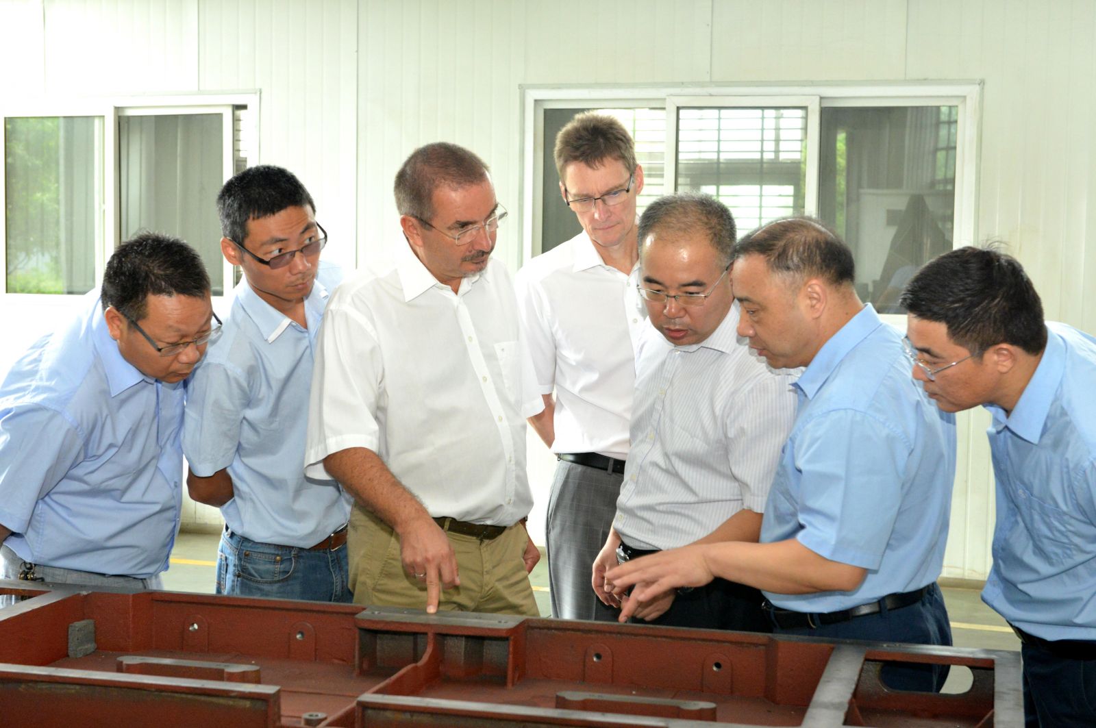 8月31日,卓郎集團產(chǎn)品戰(zhàn)略官Mr.Peter Trinkl一行5人對天門紡機進行了考察。公司總經(jīng)理焦倫進陪同卓郎客人參觀了公司生產(chǎn)現(xiàn)場及產(chǎn)品實驗中心,并從公司產(chǎn)品研發(fā)設(shè)計過程、產(chǎn)品制造及質(zhì)量控制、產(chǎn)品特點、發(fā)展目標(biāo)等方面向卓郎客人作了詳細介紹。卓郎集團主要從事新型紡紗機械的設(shè)計、制造和銷售,他們此行的目的主要是為拓寬業(yè)務(wù),與天門紡機洽談合作事宜。在考察期間,Mr.Peter Trinkl等客人對公司的生產(chǎn)現(xiàn)場、管理水平及企業(yè)文化贊不絕口,當(dāng)天雙方就簽訂了10臺TMFD81S并條機合同,相信后期的合作會有更多的驚喜。