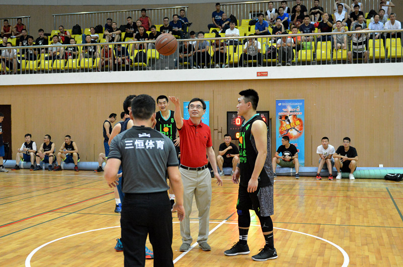 中國紡織工業(yè)聯(lián)合會副會長、中國化學纖維工業(yè)協(xié)會會長端小平宣布比賽開幕并為籃球賽開球。