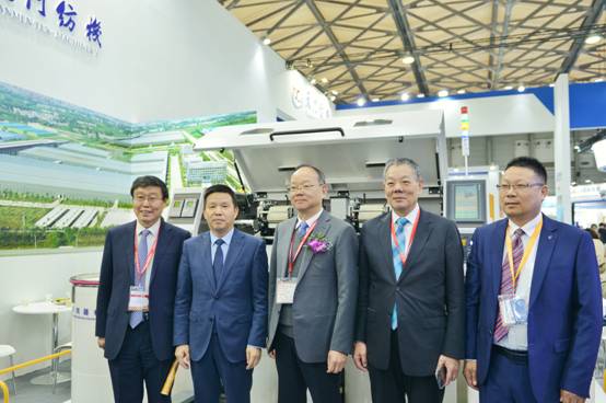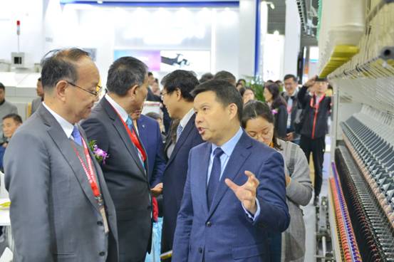 開展首日,中國紡織工業(yè)聯(lián)合會(huì)黨委書記、秘書長(zhǎng)高勇,中紡聯(lián)原會(huì)長(zhǎng)王天凱,中國紡織工業(yè)聯(lián)合會(huì)副會(huì)長(zhǎng)楊紀(jì)朝,中國紡織機(jī)械協(xié)會(huì)會(huì)長(zhǎng)顧平,中國紡織機(jī)械協(xié)會(huì)總工程師祝憲民等領(lǐng)導(dǎo)蒞臨天門紡機(jī)展位參觀。領(lǐng)導(dǎo)們近距離感受了天門紡機(jī)最新技術(shù)及設(shè)備,通過了解企業(yè)的設(shè)備性能及其工業(yè)設(shè)計(jì),對(duì)企業(yè)的技術(shù)水準(zhǔn)予以了肯定。