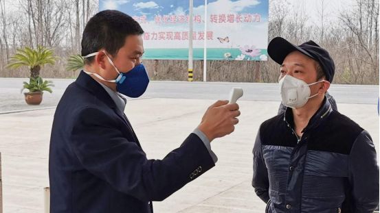組織保發(fā)貨期間,公司在大門設(shè)置了防控崗,對進出人員做好消毒、體溫測量記錄等防護措施
