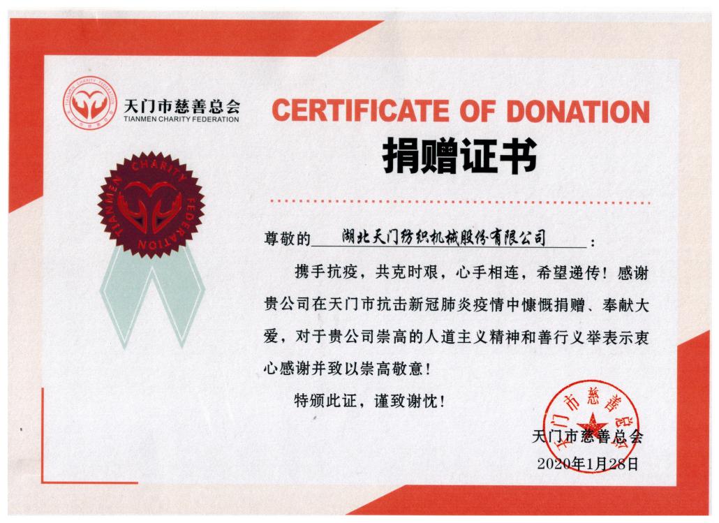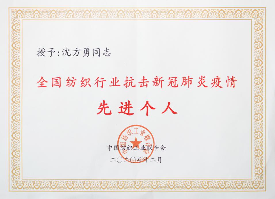 近日,中國(guó)紡織工業(yè)聯(lián)合會(huì)下發(fā)《關(guān)于表彰全國(guó)紡織行業(yè)抗擊新冠肺炎疫情先進(jìn)集體和先進(jìn)個(gè)人的決定》,天門(mén)紡機(jī)董事長(zhǎng)沈方勇獲評(píng)“全國(guó)紡織行業(yè)抗擊新冠肺炎疫情先進(jìn)個(gè)人”。