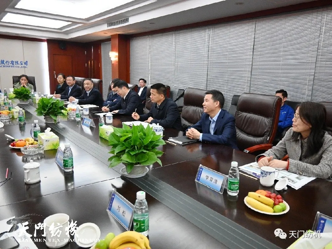 高勇書記對(duì)天門紡機(jī)的發(fā)展歷程給予了充分肯定,并希望今后堅(jiān)守并條機(jī)主業(yè),加大自主創(chuàng)新開發(fā),依托“十四五”智能制造平臺(tái),抓住機(jī)遇,作出示范,進(jìn)一步提升紡織機(jī)械智能制造水平。