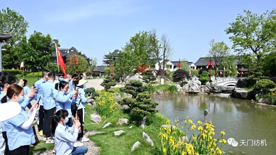 接著,青年團(tuán)員乘車來到天門市海龍島游園。這是一座位于江漢平原的田園鄉(xiāng)村游園,映入眼簾的是別具一格的蘇州古典園林,水亭樓閣鱗次櫛比,湖光山色相互襯托,好一幅迷人的畫卷。在這里,青年團(tuán)員舉行了詩歌朗誦比賽,借此抒發(fā)愛國情懷。參賽者一個個精神抖擻、慷慨激昂,臺下的觀眾聽得熱血沸騰、群情激昂。
