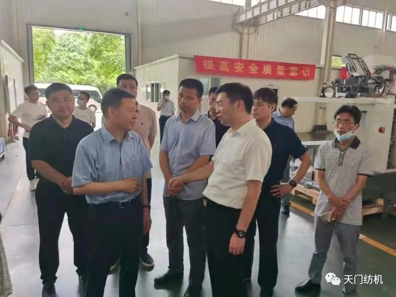 6月15日,酷暑炎熱,天門市委副書記、市長楊興銘,副市長高文博以及市經(jīng)信局、市科技局、市政務(wù)服務(wù)和大數(shù)據(jù)管理局、市經(jīng)濟(jì)開發(fā)區(qū)等相關(guān)部門負(fù)責(zé)人專程來到天門紡機(jī),現(xiàn)場調(diào)研技術(shù)裝備改造升級和安全生產(chǎn)工作。