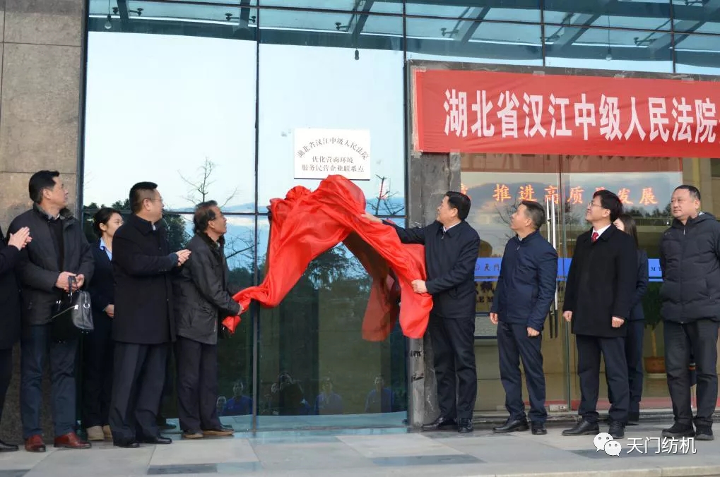 12月29日,“湖北省漢江中級人民法院優(yōu)化營商環(huán)境服務(wù)民營企業(yè)聯(lián)系點(diǎn)”掛牌儀式在天門紡機(jī)舉行。湖北省高級人民法院二級高級法官肖志堅(jiān),漢江中級人民法院院長徐少林,天門市人大常委會黨組書記、副主任董青平,天門市人民法院院長程超平等領(lǐng)導(dǎo)共同為聯(lián)系點(diǎn)揭牌。全國人大代表、天門紡機(jī)董事長沈方勇受牌。