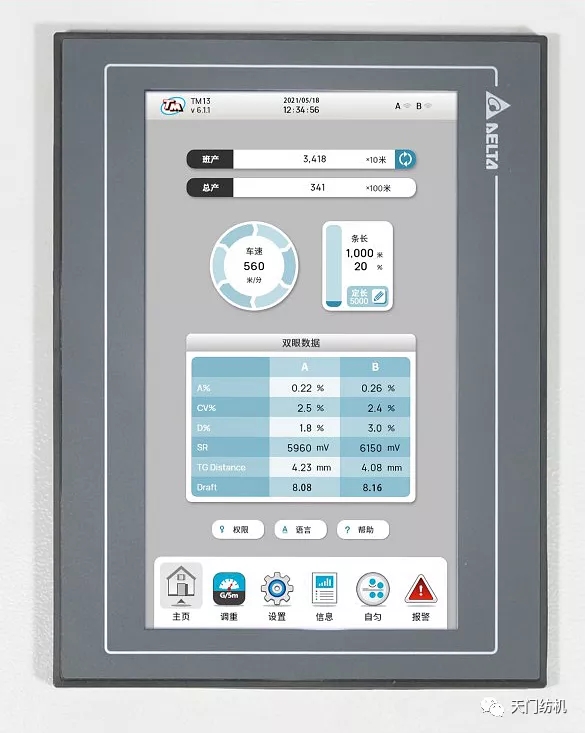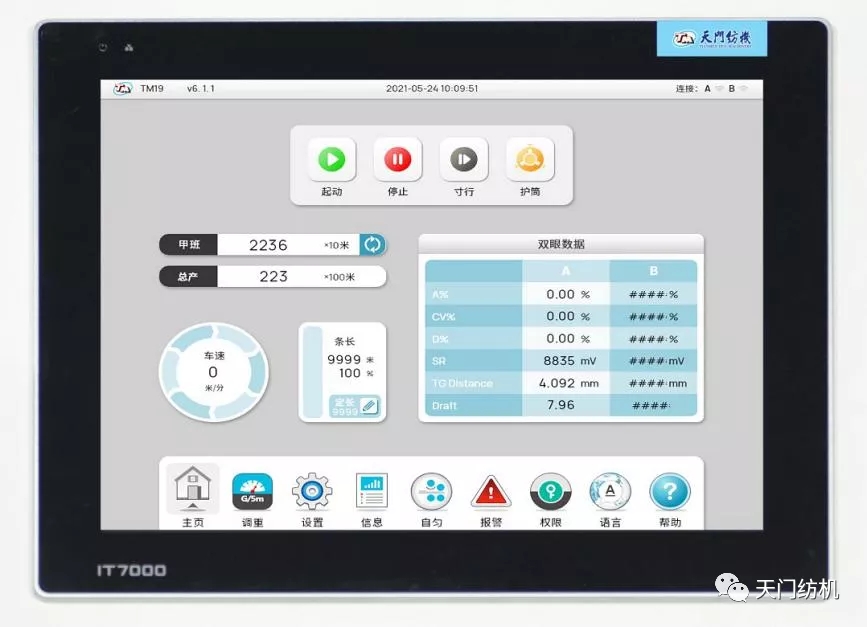 天門(mén)紡機(jī)在新一代T1系列并條機(jī)設(shè)計(jì)中,創(chuàng)新性地融入“系統(tǒng)化、人性化、圖形化”的設(shè)計(jì)理念。