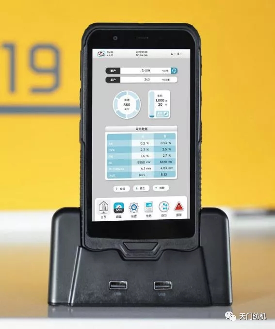 天門紡機(jī)緊密結(jié)合并條工序的特點(diǎn),成功運(yùn)用了集多種功能于一體的工業(yè)級手持終端,可以對T1系列并條機(jī)實(shí)施穩(wěn)定、可靠、精準(zhǔn)的無線操控。