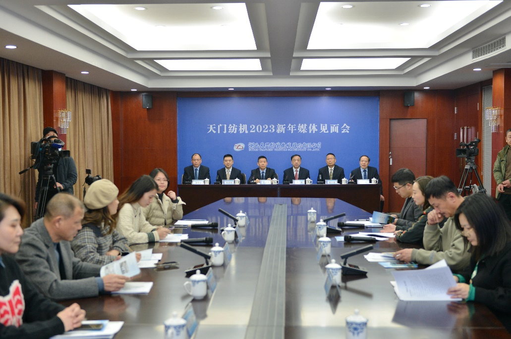 2023年1月10日上午10:00,冬日和煦,陽(yáng)光明媚。湖北天門(mén)紡織機(jī)械股份有限公司在天門(mén)市委宣傳部及市融媒體中心的關(guān)心和指導(dǎo)下,召開(kāi)了主題為“交流疫情三年逆勢(shì)而為心路歷程,探討后疫情時(shí)代企業(yè)發(fā)展新思路”的“2023新年媒體見(jiàn)面會(huì)”。