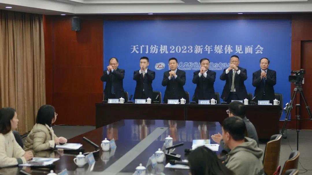 媒體提問(wèn)結(jié)束后,沈方勇董事長(zhǎng)率公司同仁向大力支持召開(kāi)本次媒體見(jiàn)面會(huì)的天門(mén)市委宣傳部、融媒體中心及蒞臨會(huì)議的各媒體朋友表達(dá)了感激之情,并提前向長(zhǎng)期支持關(guān)心天門(mén)紡機(jī)發(fā)展的各界同仁和廣大用戶拜年。