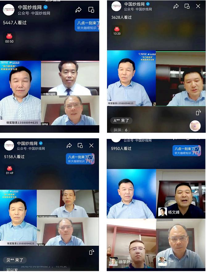 本次活動進(jìn)行了6場直播。其間,天門紡機(jī)副總經(jīng)理楊文峰就紡織裝備的發(fā)展趨勢作了深度剖析,分享了并條機(jī)牽伸形式、傳動方式、換筒方式及自調(diào)勻整等方面的專業(yè)知識;天門紡機(jī)品控總監(jiān)樊早斌、售后服務(wù)中心主任于少波分別就并條機(jī)操作、工藝要求、維護(hù)保養(yǎng)、常見問題排查等方面的知識和經(jīng)驗(yàn)進(jìn)行了交流。線上學(xué)習(xí)氛圍濃厚,平均每場都有近6千人參加學(xué)習(xí),總計超3萬余人。