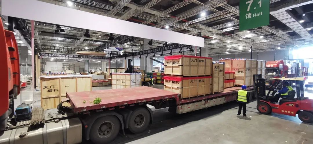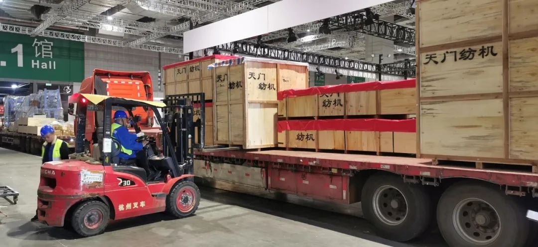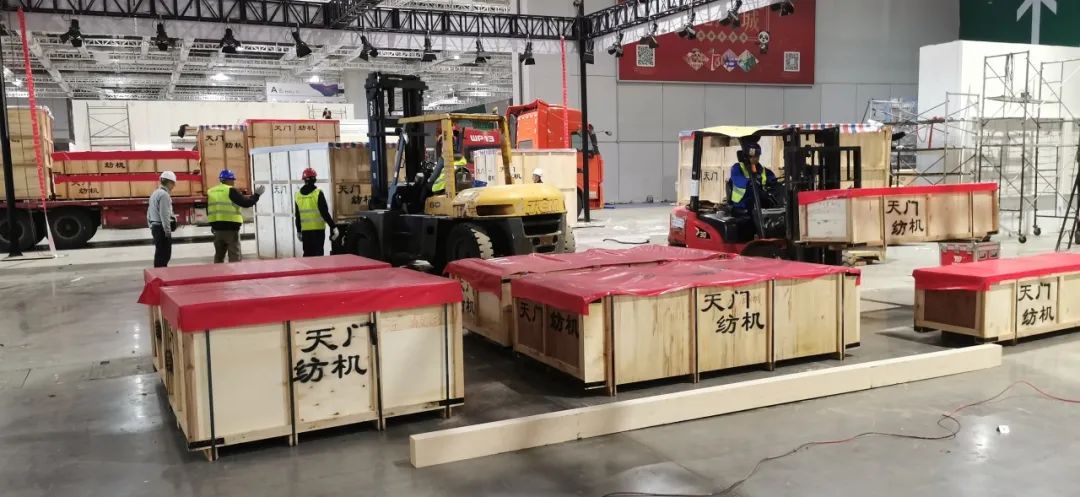 11月14日,代表T2、T3系列并條機(jī)最高水平的4款樣機(jī)順利運(yùn)抵上海國(guó)際會(huì)展中心,開(kāi)始布展。