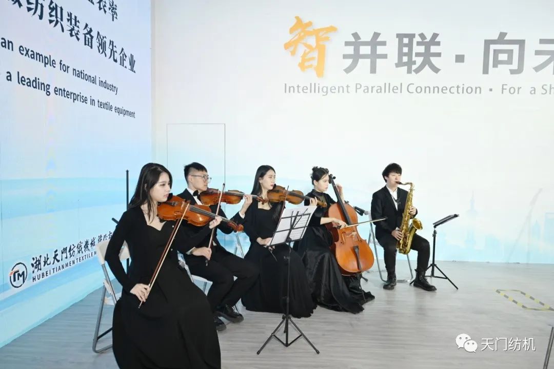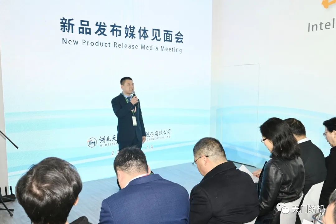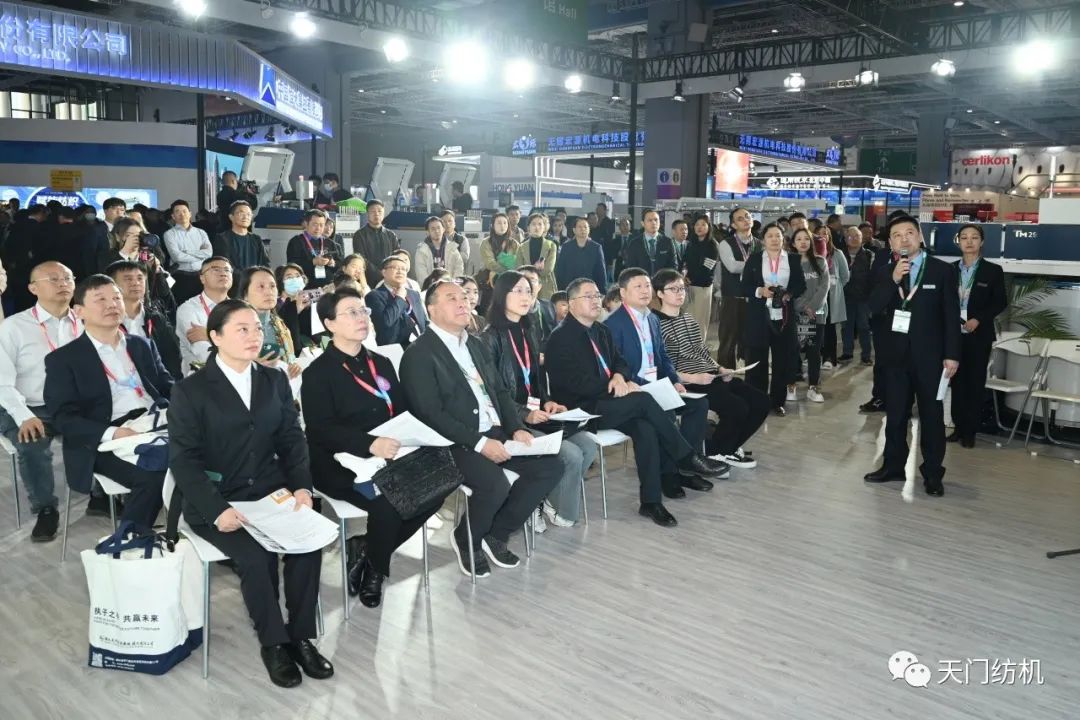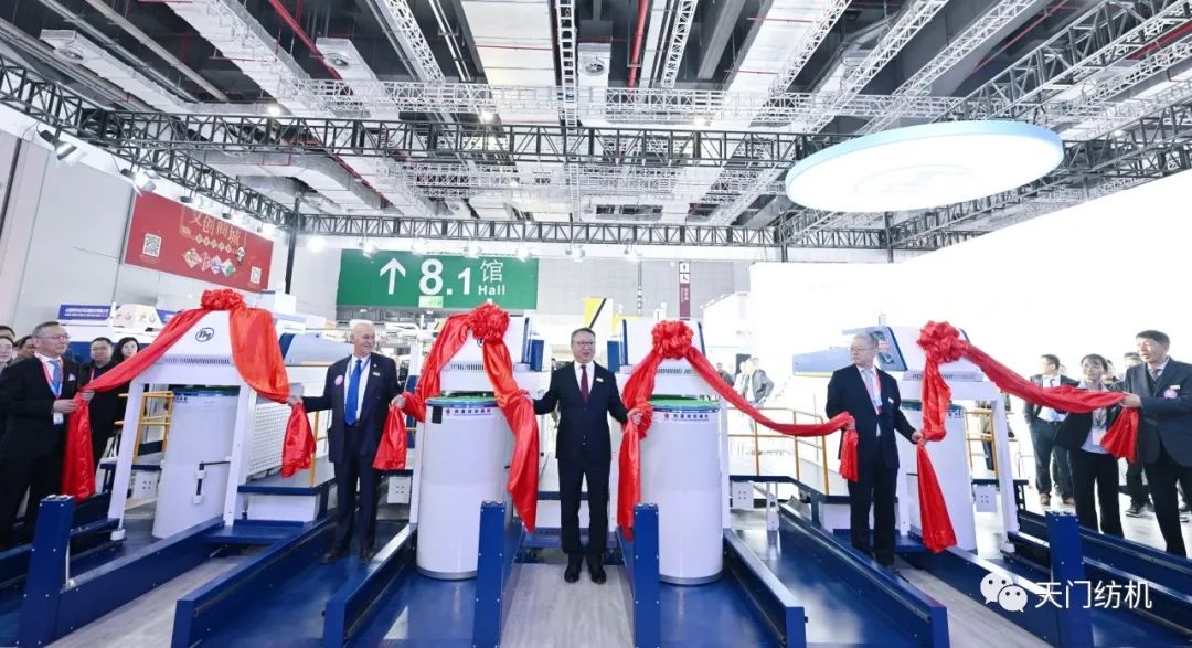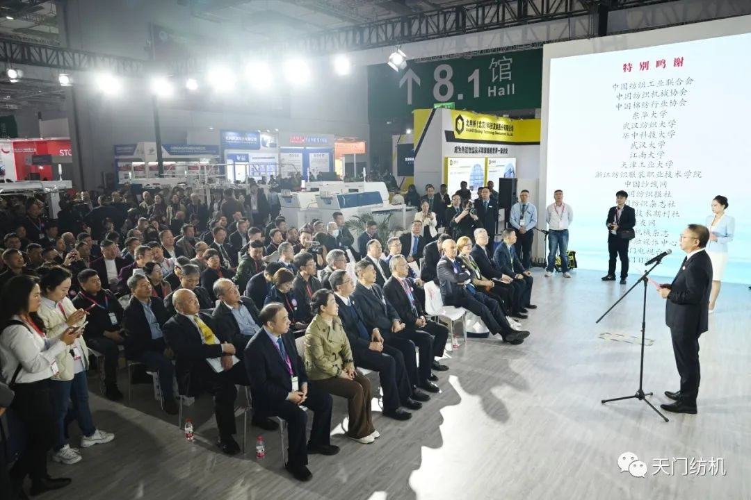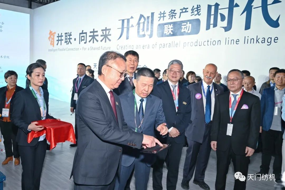 中國紡織工業(yè)聯(lián)合會會長孫瑞哲,副會長夏令敏、徐迎新,老領導張延愷副會長和歐洲紡織機械制造商委員會主席Mr. Ernesto Maurer等嘉賓共同揭幕,天門紡機T2、T3系列新產(chǎn)品正式亮相。