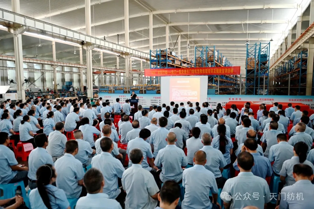 室外赤日炎炎,酷暑難當;室內(nèi)座無虛席,氣氛熱烈。2024年7月17日下午,天門紡機在生產(chǎn)現(xiàn)場組織了一場別開生面的健康知識及急救技能培訓活動,天門市第一人民醫(yī)院的多位醫(yī)療專家應邀來公司進行健康知識講座和急救實操演示。